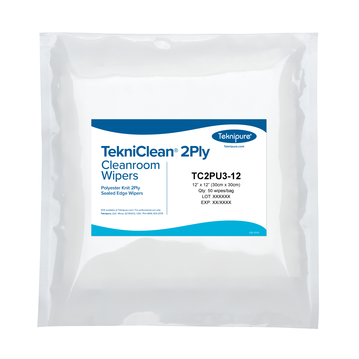 Teknipure’s TekniClean® 2Ply dry polyester knit cleanroom wipers with sealed edges are designed from two-ply 100% polyester material, creating a wiper with a higher absorbency and durability vs a single-layer polyester wipe. Ideal for high performance in critical environments that demand low-linting, low-shedding, and highly absorbent wiping solutions.