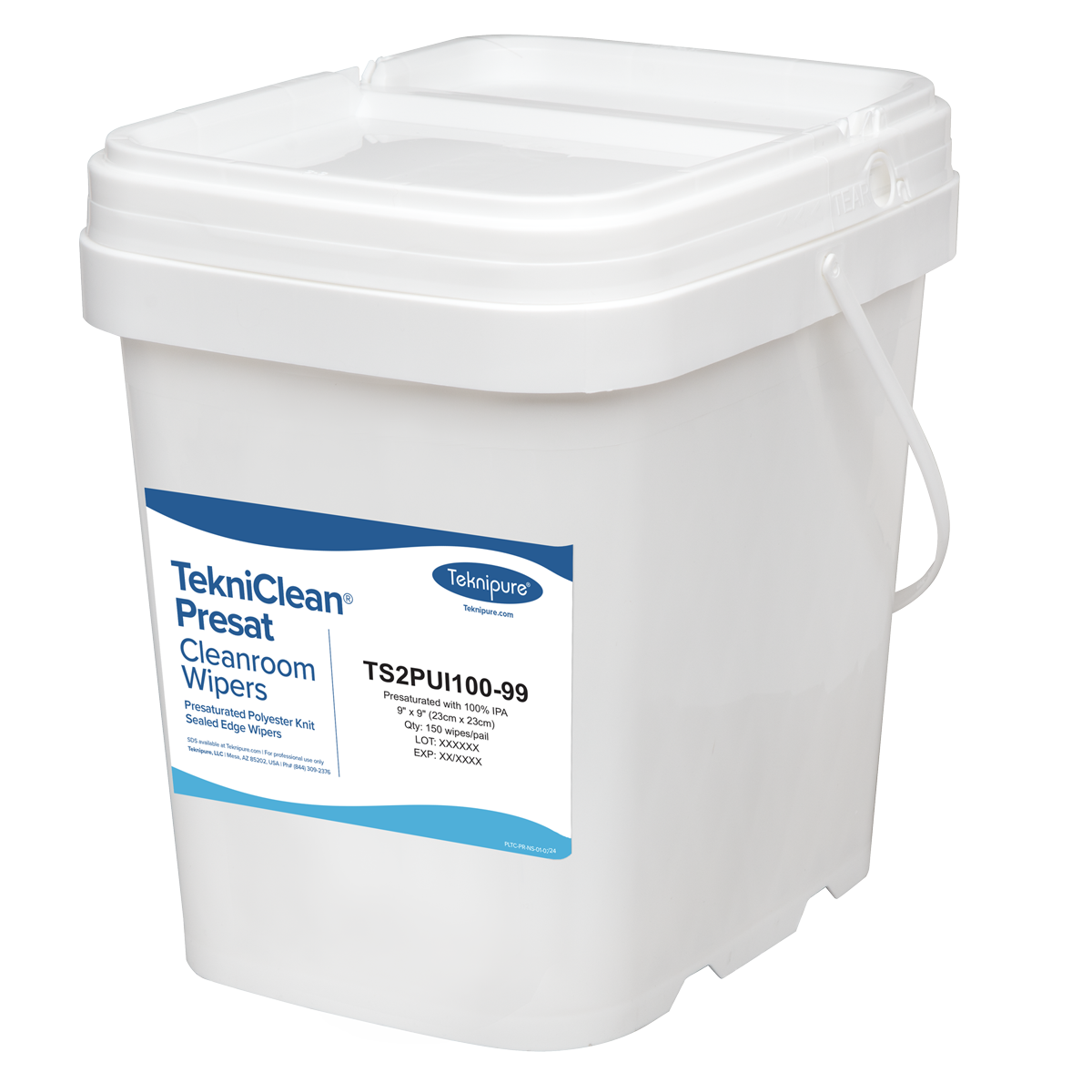 TekniClean® Presat Polyester Knit Wiper, Sealed Edge, 100% IPA, 9″x9″, Pail