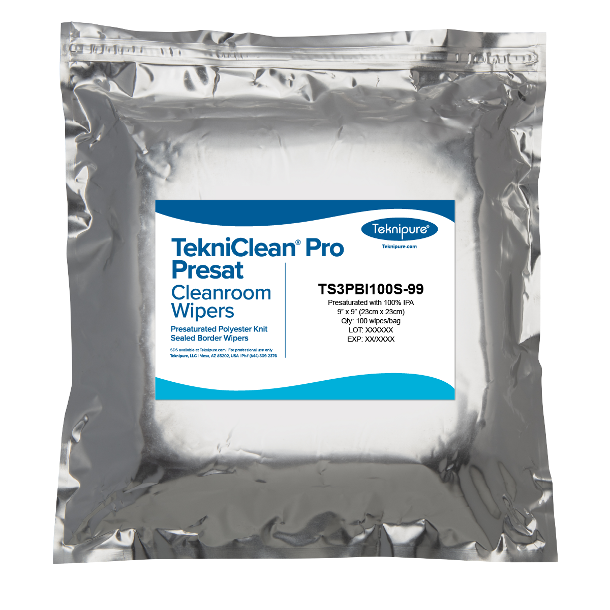 Teknipure’s TekniClean® Pro Presat polyester knit cleanroom wipers with sealed border, presaturated with 70% IPA and 30% DI water, are designed for high performance in critical environments that demand low-linting and low-shedding wiping solutions. Engineered from polyester material, these knit pre-wetted wipes provide great particle pick-up and surface cleaning.