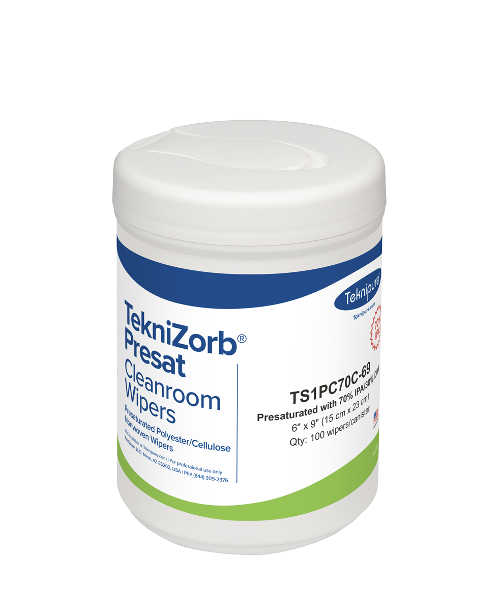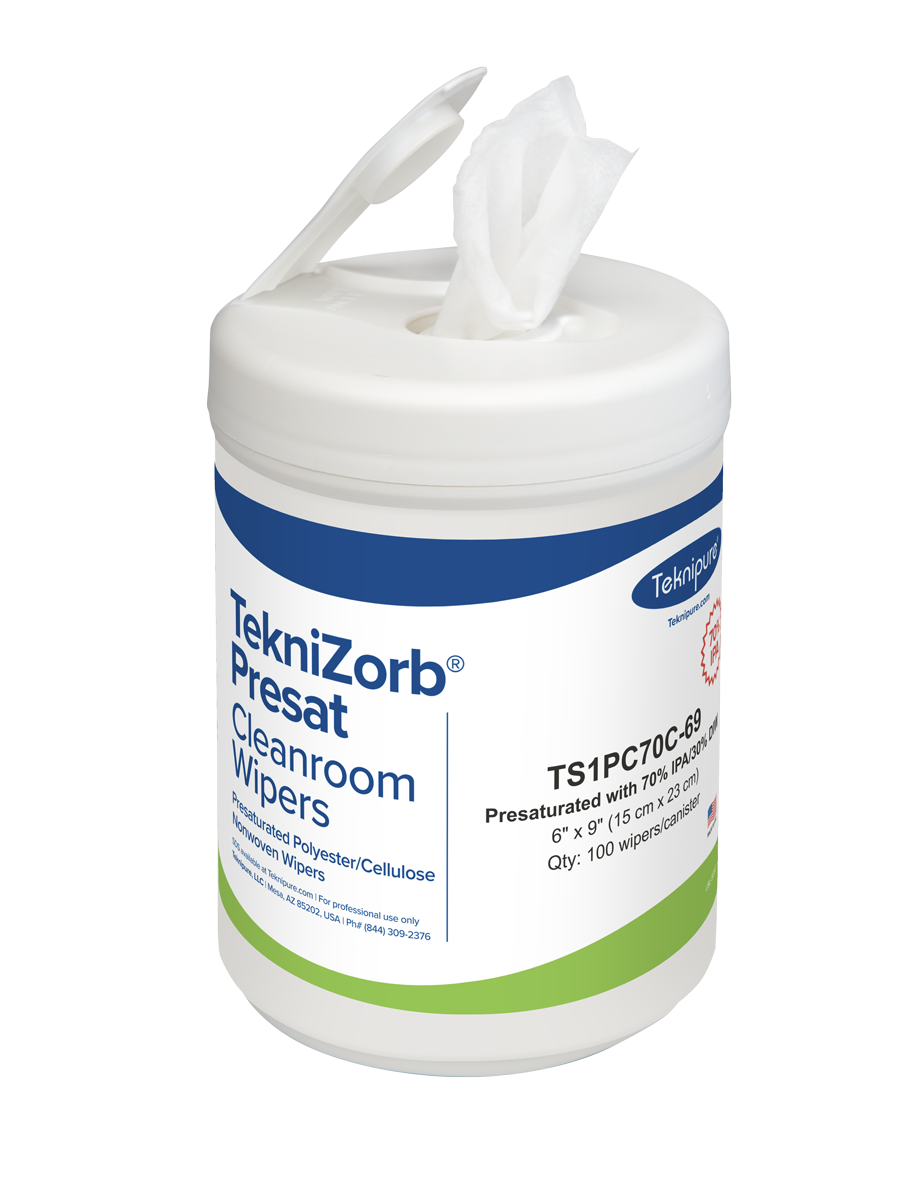 Teknipure’s TekniZorb® Presat presaturated 70% IPA polyester/cellulose nonwoven cleanroom wipers are engineered for precision cleaning in controlled environments. These low-lint, polycell nonwoven wipes are saturated with 70% isopropyl alcohol / 30% DI water blend, making them ideal for removing contaminants, residues, and particles from surfaces in cleanrooms, pharmaceutical manufacturing, semiconductor fabrication, biotech labs, and medical device production.
