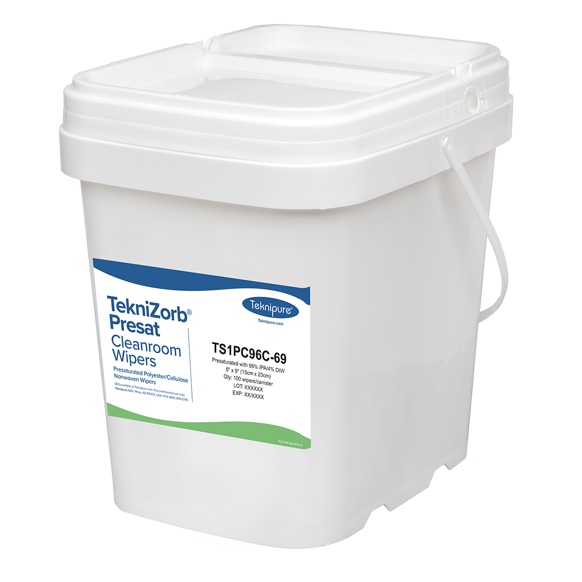 Teknipure’s TekniZorb® Presat presaturated 70% IPA polyester/cellulose nonwoven cleanroom wipers are engineered for precision cleaning in controlled environments. These low-lint, polycell nonwoven wipes are saturated with 70% isopropyl alcohol / 30% DI water blend, making them ideal for removing contaminants, residues, and particles from surfaces in cleanrooms, pharmaceutical manufacturing, semiconductor fabrication, biotech labs, and medical device production.